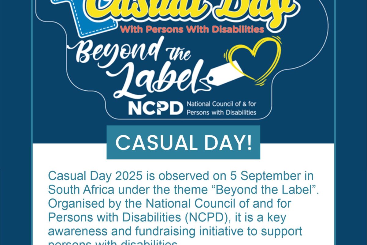 Casual Day 2025 will take place on Friday, September 5, 2025, in South Africa, with the theme “Beyond the Label”. Organised by the National Council of and for Persons with Disabilities (NCPD), the event is a flagship awareness and fundraising campaign to support people with disabilities.